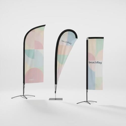 Vóór een winkel in de voetgangerszone, bij een beursstand in de hal of bij het strandcafé langs de boulevard: individuele beachflags (dropflags) vormen een blikvanger, zowel binnen als buiten! U kunt uw vlag bij ons in vier verschillende maten bestellen: S, M, L en XL. Ofwel als compleet systeem, met een metalen plaat als standvoet, stang en bedrukte vlag, of alleen de vlag zelf. Daarmee bent u te allen tijde flexibel en kunt u het motief met het drukken van meer vlaggen aan uw actuele behoefte aanpassen. Het mooie van onze vlaggen: ze zijn wasbaar en kunnen worden gestreken.