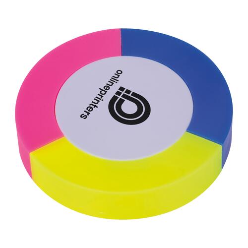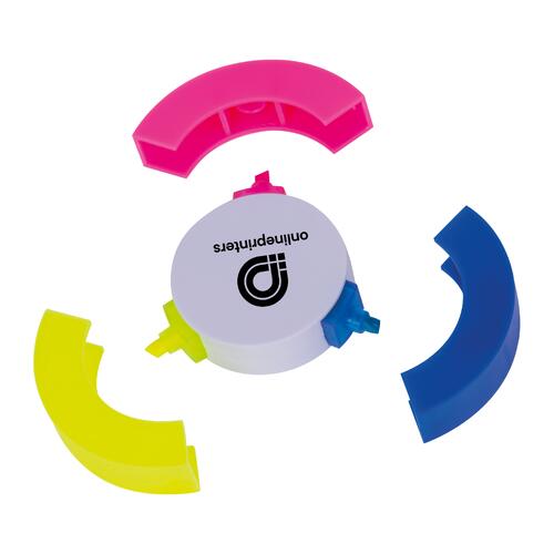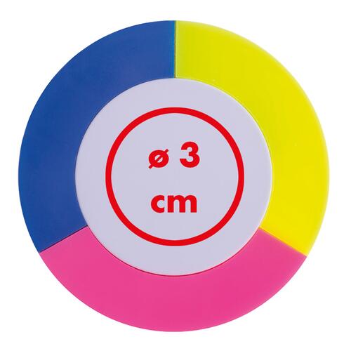 • De 3-in-1 markeerstift heeft een roze, een gele en een blauwe markeerstift