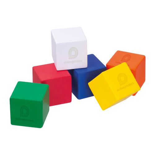• Anti-stressbal in kubusvorm van geschuimd polyurethaan (PU)