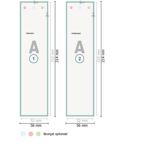 - Gegevensformaat (incl. 2 mm afloop): 5,6 x 21,4 cm