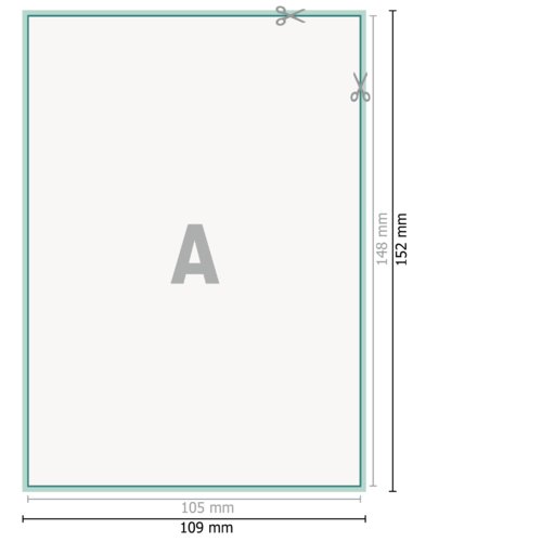 - Gegevensformaat (incl. 2 mm afloop): 10,9 x 15,2 cm