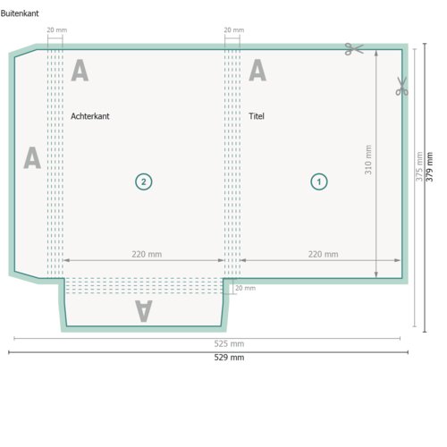- Gegevensformaat (incl. 2 mm afloop): 52,9 x 37,9 cm