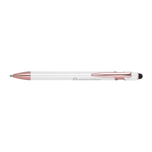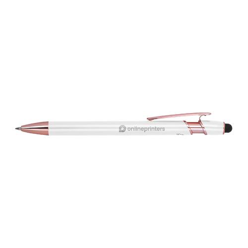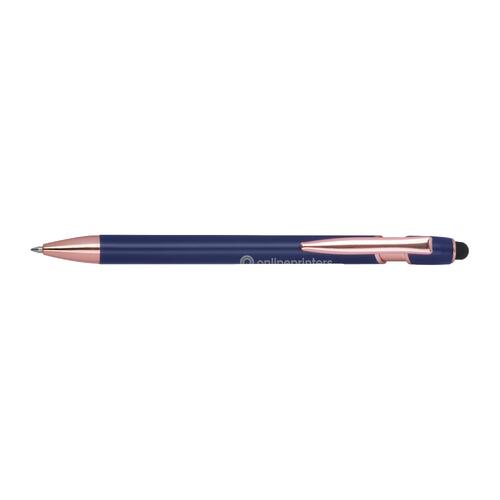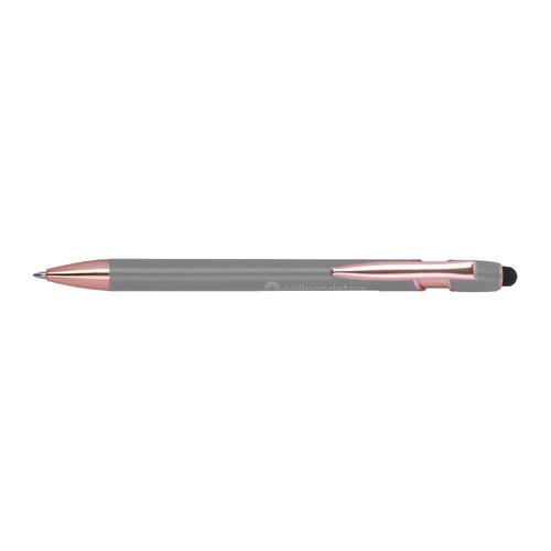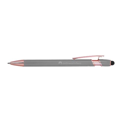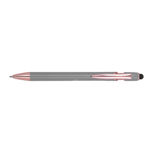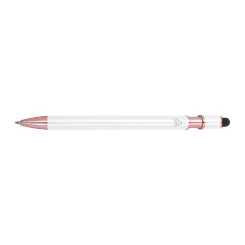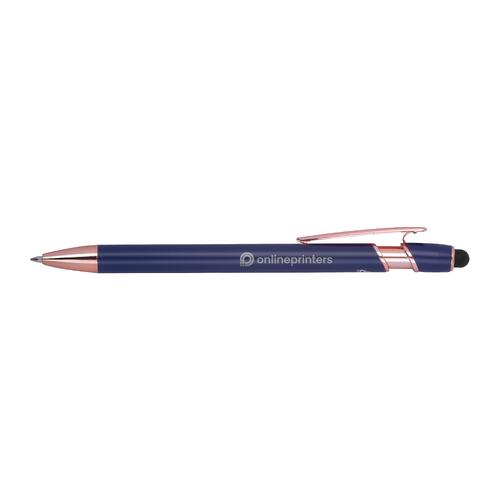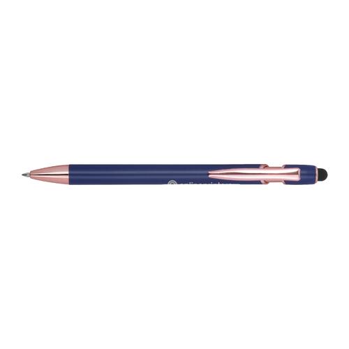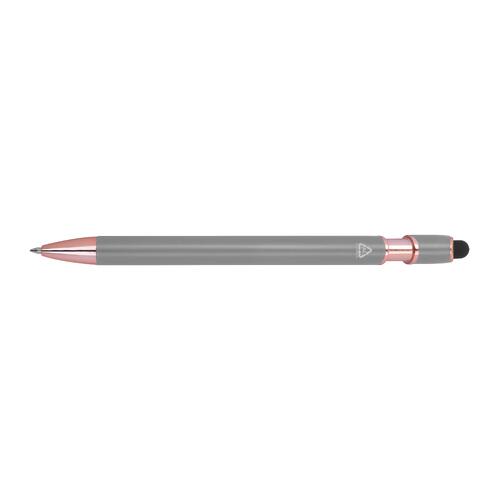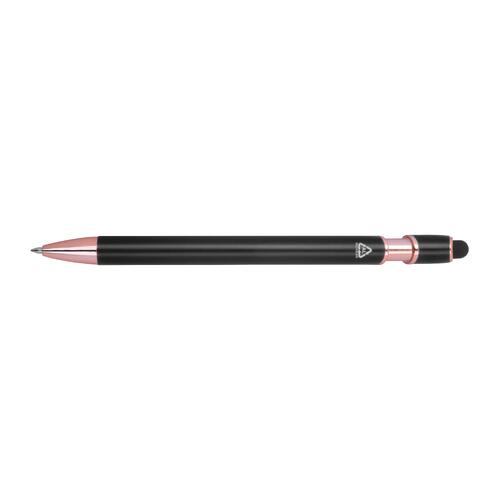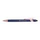 - Semi-gelpen van gerecycled aluminium met touchpen en een grootvulling met blauwe inkt (1 mm punt)