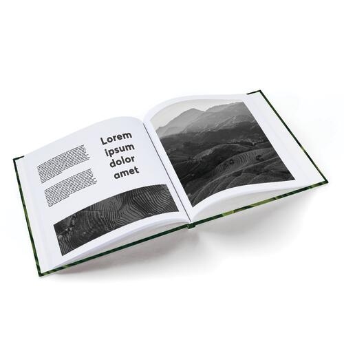 - Hardcoverboek in staand formaat met rechte rug en scherpe hoeken