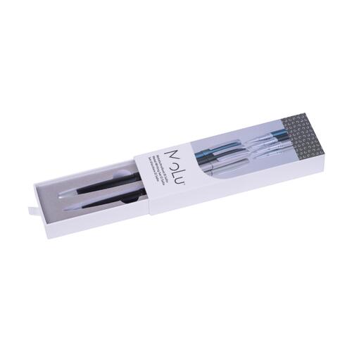 - Bevat twee elegante metalen pennen met brede clip – balpen & rollerball