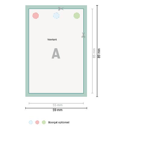 - Gegevensformaat (incl. 2 mm afloop): 5,9 x 8,9 cm