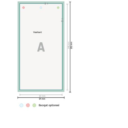 - Gegevensformaat (incl. 2 mm afloop): 5,4 x 15,2 cm