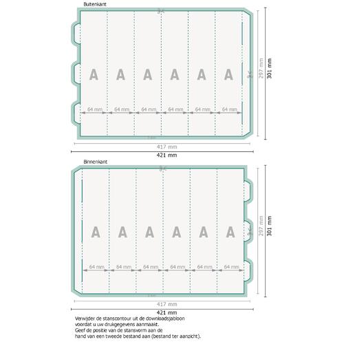 - Gegevensformaat (incl. 2 mm afloop): 42,1 x 30,1 cm