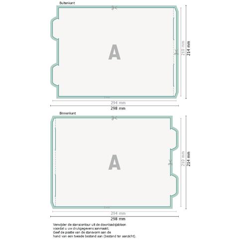 - Gegevensformaat (incl. 2 mm afloop): 29,8 x 21,4 cm