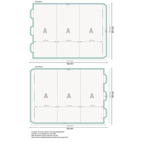 - Gegevensformaat (incl. 2 mm afloop): 42,1 x 30,1 cm