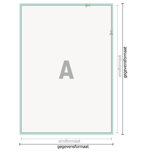 - Rondom 2 mm afloop aanhouden, belangrijke informatie met ten minste 4 mm afstand ten opzichte van het eindformaat